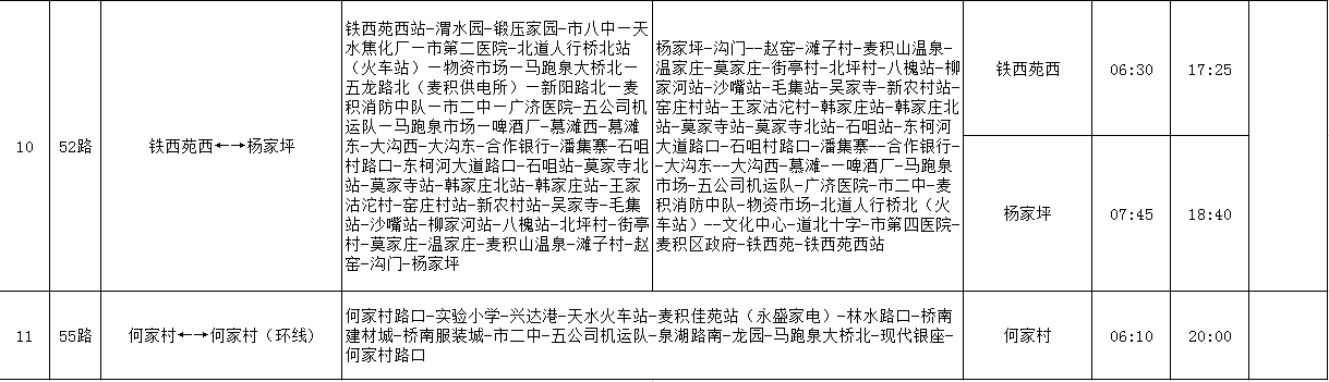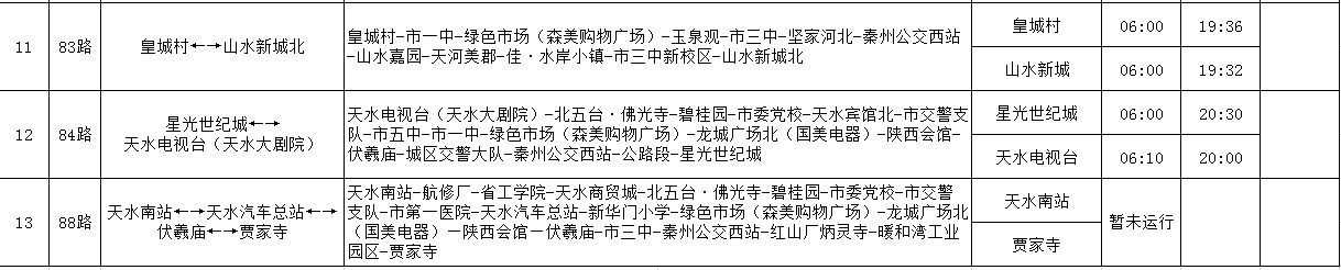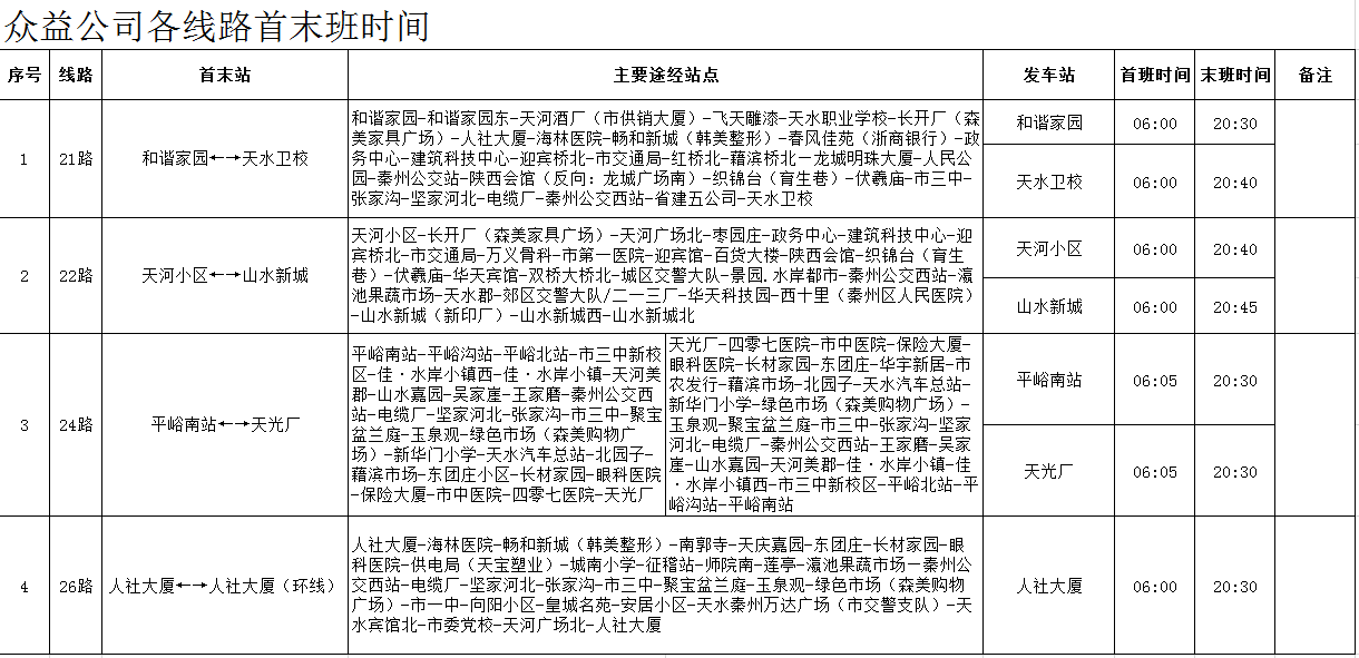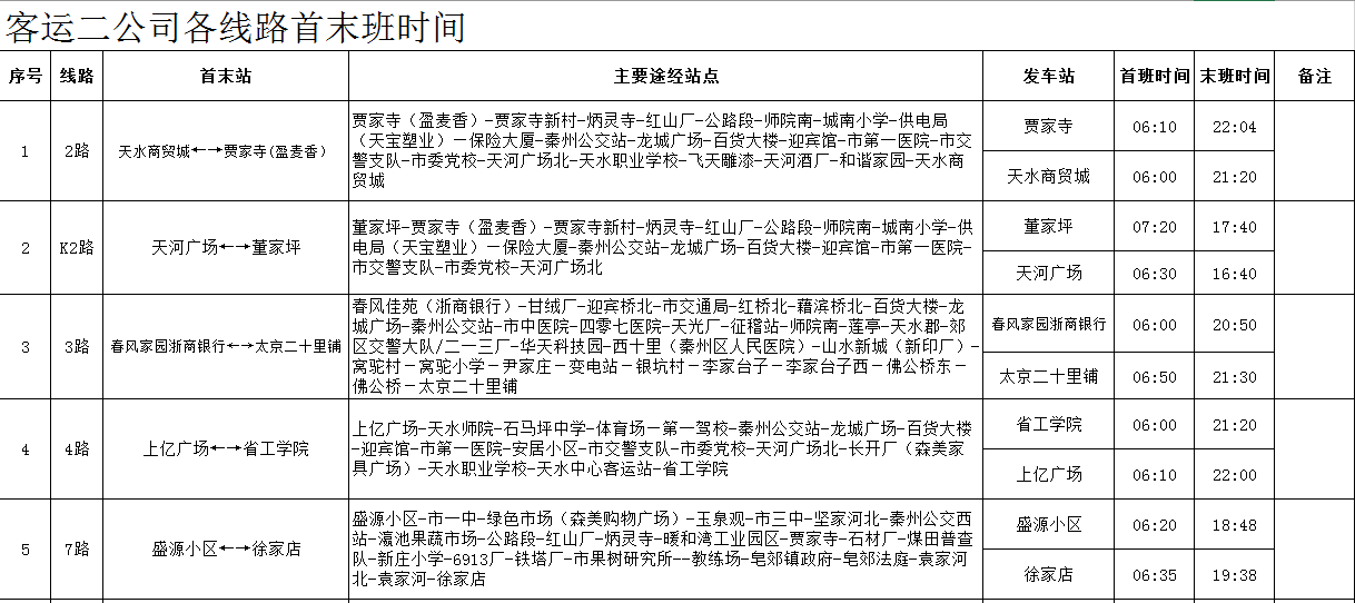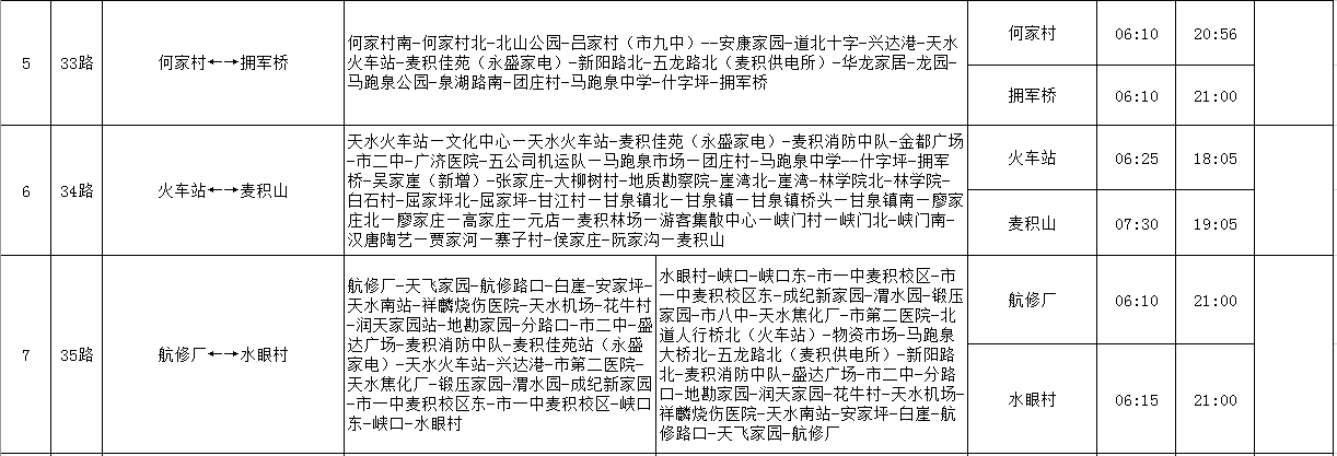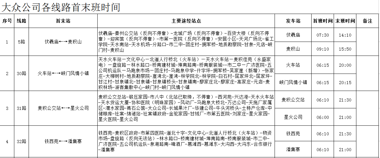 天水羲通公交線路、車輛信息一覽表