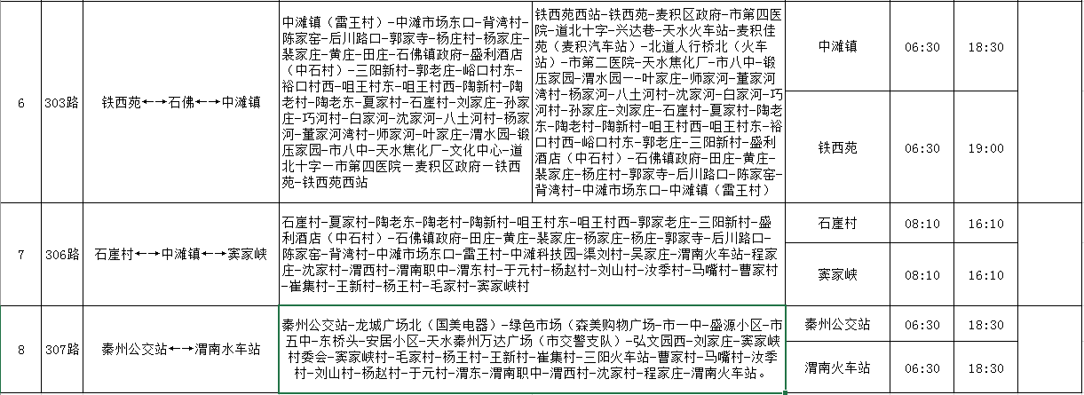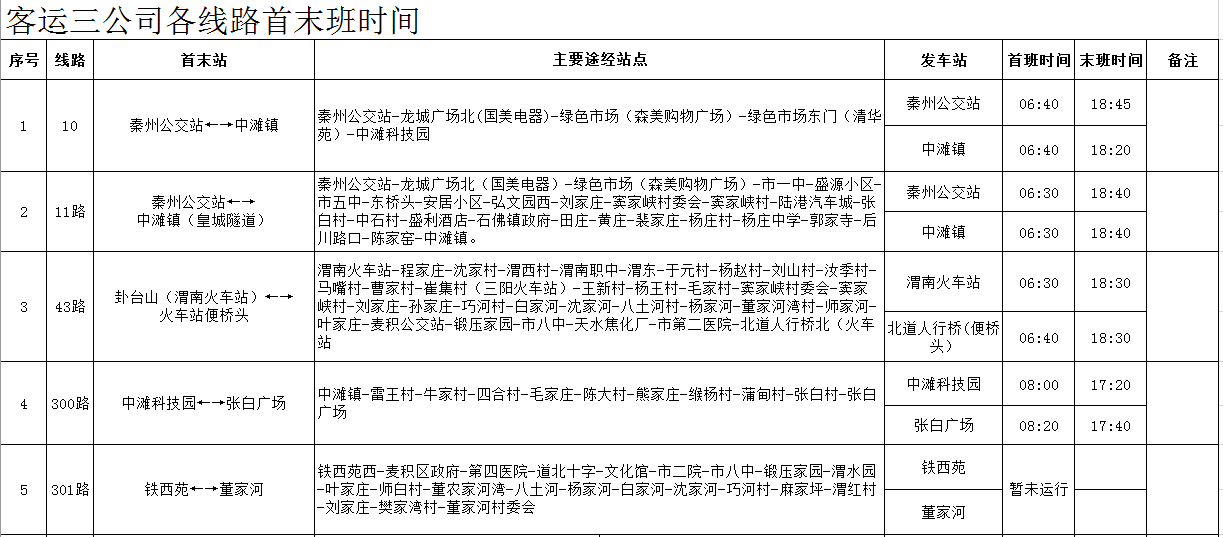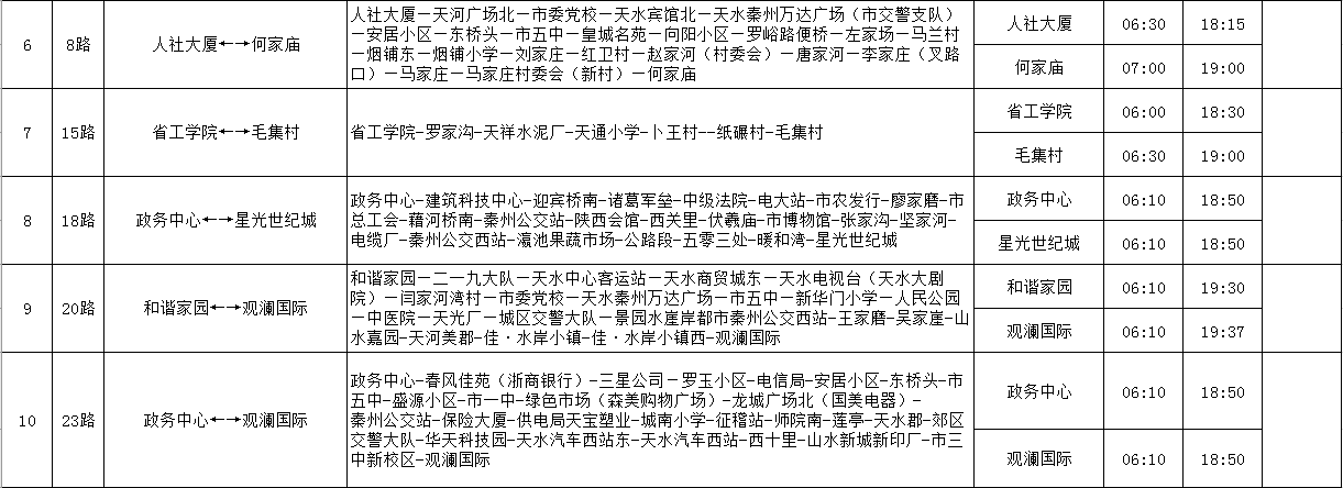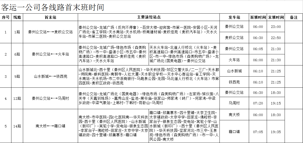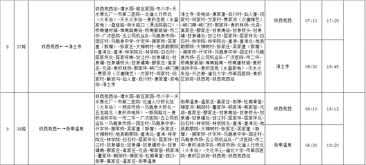 天水羲通公交線路、車輛信息一覽表